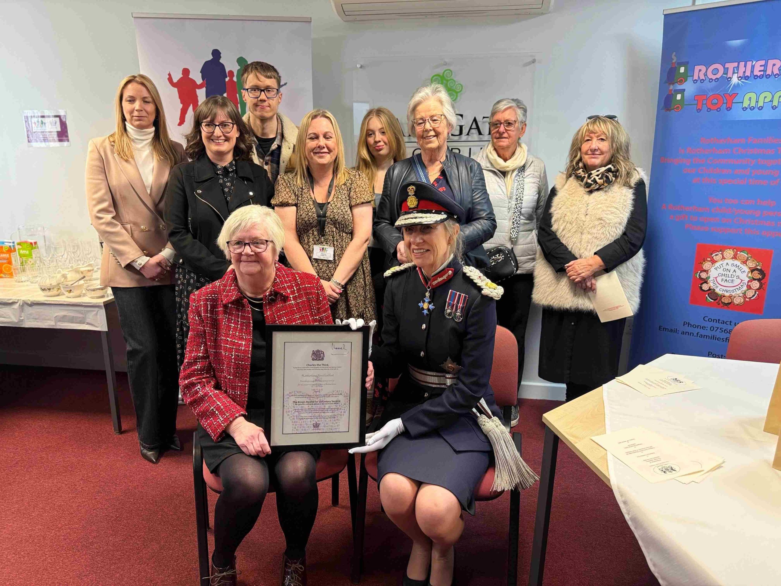 This is equivalent to an MBE for voluntary groups and was officially presented to us in March 2025 by HM Lord Lieutenant for South Yorkshire, Dame Hilary Chapman.